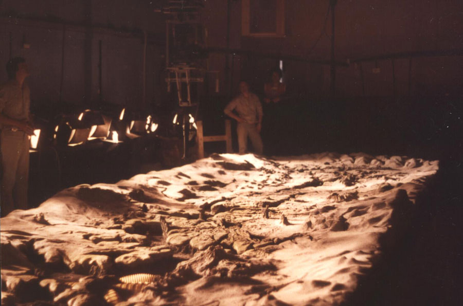 Plaster tabletop model of the surface of Titan. Note the Saturn 3 landing pad and entrance in lower left of frame. (photo courtesy Oxford Scientific Films)