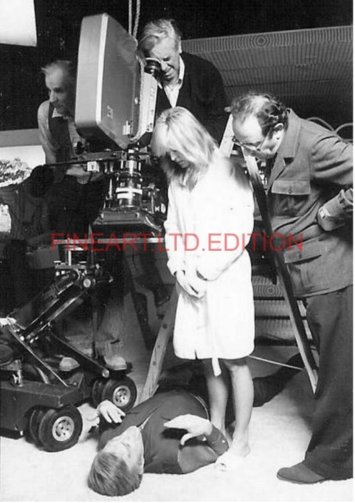 Stanley Donen stands next to Farrah, while camera operator David Harcourt BSC films a close up of Kirk on the living quarters set. (still courtesy fineartltd.edition)