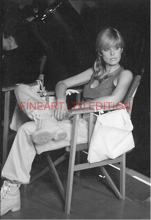 Farrah relaxes between takes next to Harvey Keitel. (courtesy fineartltd.edition)