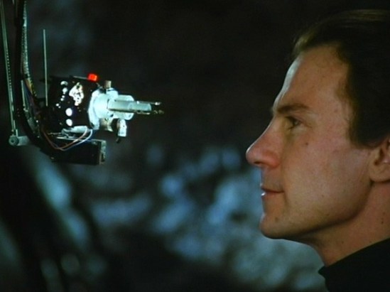 22nd Century peeping tom – Benson watches Alex and Adam being intimate on a view screen. (screen cap courtesy filmovizia.blogspot.com)