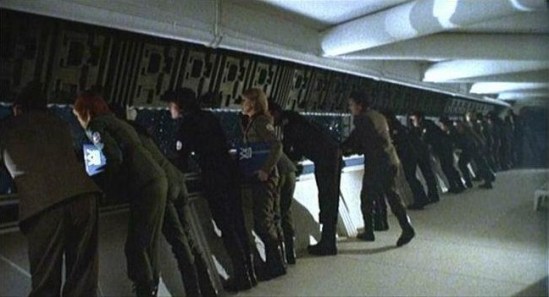Alex and Adam stroll through the corridors of Saturn 3 (screen cap courtesy Craig Spivey).